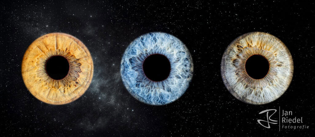 Deine Iris – ein unverwechselbares Kunstwerk der Natur! Wusstest du, dass die Iris deines Auges so einzigartig ist wie dein Fingerabdruck? Ihre faszinierenden Muster und Farben erzählen eine ganz persönliche Geschichte. Mit unserer Iris-Fotografie halten wir diese Einzigartigkeit in atemberaubenden Bildern fest – ein Kunstwerk, das es kein zweites Mal gibt.
